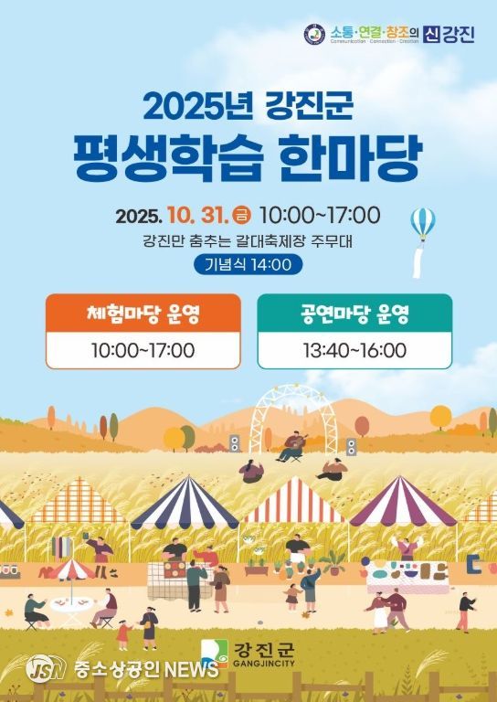강진군이 오는 31일 강진만 춤추는 갈대축제가 열리는 강진만 생태공원에서 2025 강진군 평생학습 한마당을 개최한다.