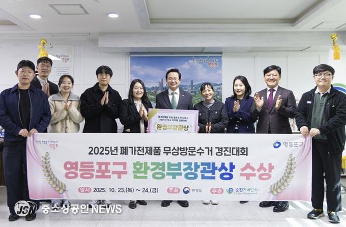 영등포구가 10월 23일 제주에서 열린 ‘2025년 폐가전제품 무상방문수거 우수지자체 경진대회’에서 ‘환경부장관상’을 수상했다고 밝혔다.