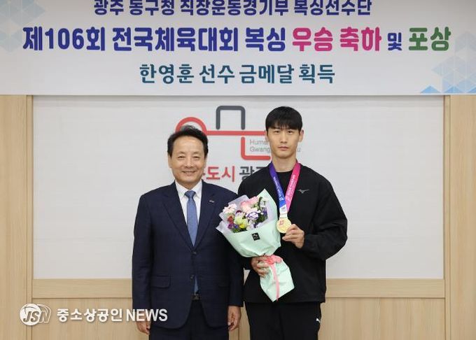 광주 동구는 직장운동경기부 동구복싱단 소속 한영훈 선수가 최근 부산 벡스코에서 열린 ‘제106회 전국체육대회’에 출전해 금메달을 수상했다고 밝혔다.