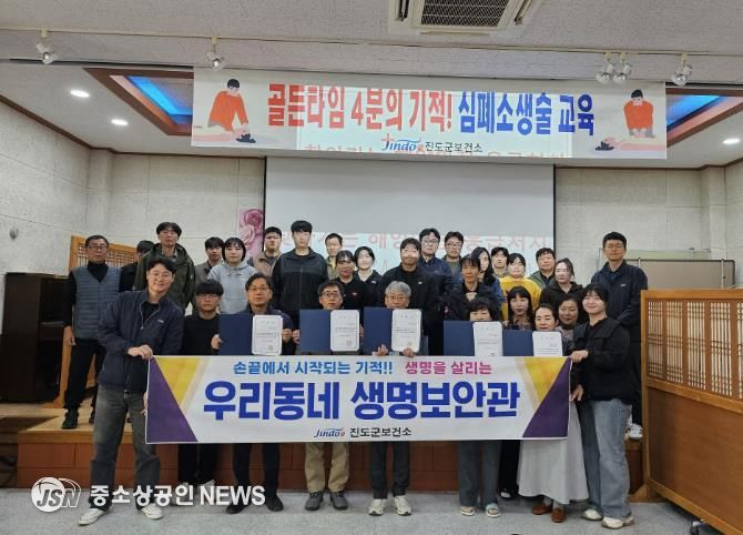 진도군은 지난 10월 29일에 진도군보건소에서 응급환자 발생 시 신속하게 대응할 수 있도록 심폐소생술(CPR) 교육을 진행하고, 교육 수료자를 ‘우리동네 생명보안관’으로 위촉했다.