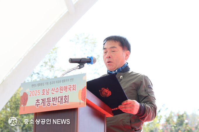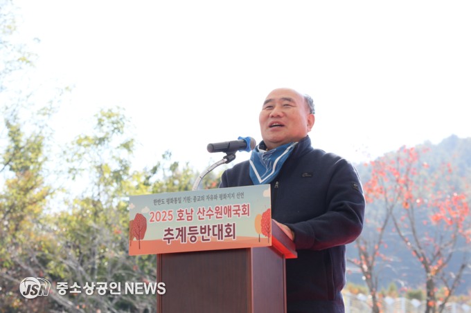 2025 산수원애국회 호남권 추계등반대회 행사는 정병수 산수원애국회 전북회장의 사회로 산수원애국회 광주시 정장천 회장, 전남 이한영 회장, 전북 정병호 회장, 평화대사협의회 광주시 조영표 회장, 전북 김희수 회장의 환영사, 김석진 한국회장의 인사말, 최승묵 회장의 대회사, 조창언 상임고문의 격려사, 최영록 지부장의 평화선언문 낭독, 황사연 전북 진안 지부장의 만세삼창 순으로 진행되었다.