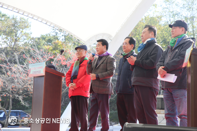 [조창언 산수원애국회 광주전남 상임고문이 대회사을 하고 있다]