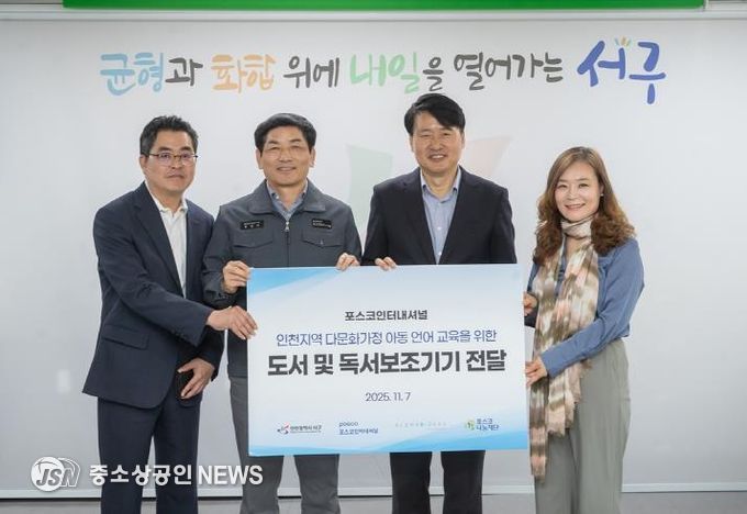 인천 서구는 지난 7일 ㈜포스코인터내셔널로부터 다문화 가정 아동 언어발달을 위한 도서 및 도서기기를 전달받았다.