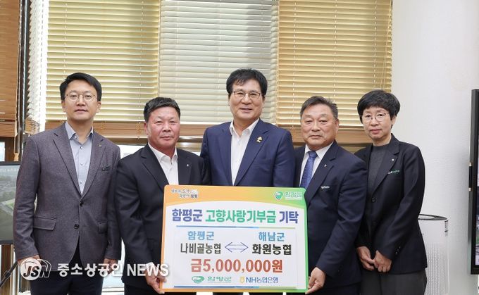 함평군은 11일 “함평 나비골농협과 해남 화원농협이 고향사랑기부제에 500만 원을 상호 기부했다”고 밝혔다.