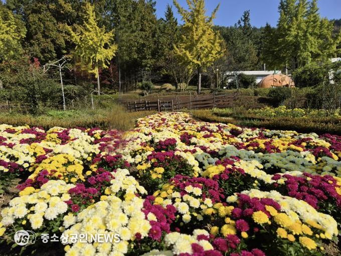 전남 함평군 함평자연생태공원이 오색단풍과 국화가 어우러진 가을 풍경 속에서 방문객들에게 깊은 계절의 감동을 선사하고 있다.