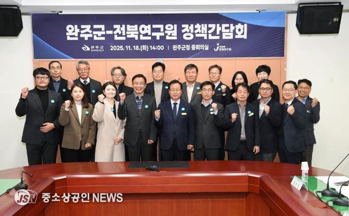 완주군과 전북 싱크탱크인 전북연구원이 18일 오후 완주군청에서 유 군수와 장 원장대행을 포함한 주요 관계자 20여 명이 참석한 가운데 ‘완주군-전북연구원 정책간담회’를 열었다.