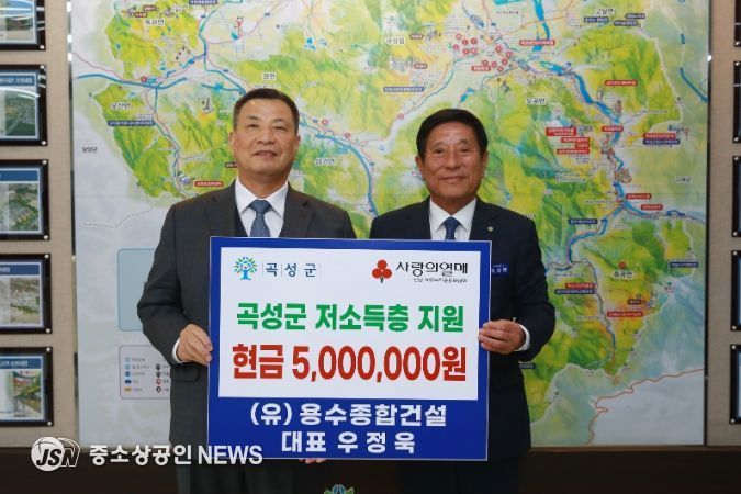 전남 곡성군은 지난 17일 여수시 화장동에 소재한 (유)용수종합건설(대표 우정욱)에서 곡성군 노인맞춤돌봄서비스 이용 어르신을 지원하기 위해 현금 500만 원을 기탁했다고 18일 밝혔다.