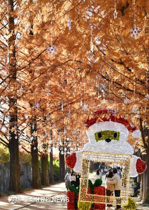 담양군 메타세쿼이아 가로수길이 가을 풍경의 절정을 보여주고 있다. 고요한 물 위에 반사된 숲의 색감까지 더해져 담양 특유의 늦가을 정취를 느끼려는 이들의 발걸음이 이어지고 있다.