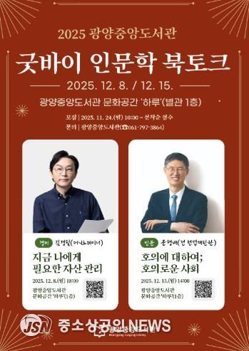 광양중앙도서관은 연말을 맞아 시민들의 자기성찰과 삶의 재정비를 돕기 위한 '굿바이 인문학 북토크'를 운영한다고 밝혔다.
