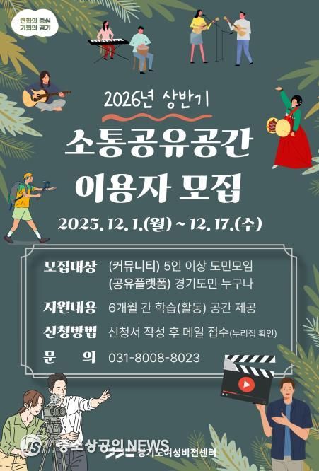 경기도여성비전센터가 오는 12월 1일부터 2026년도 상반기 ‘소통공유공간’ 이용을 희망하는 정기 모임과 단체 20곳을 모집한다.