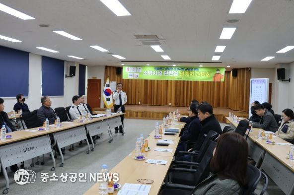 이번 간담회는 소방시설 시공·유지 관리 현장에서의 애로사항을 공유하고, 민·관 협력체계를 구축해 보다 안전하고 성실한 소방 시공 문화 정착을 도모하기 위해 소방관련업체 57개 업체를 대상으로 ‘2025년도 소방관련 법령 제·개정 주요사항 안내’, ‘소방시설 공사 및 유지관리 사례 공유’, ‘최신 소방정책 및 제도 개선 방향 논의’, ‘공사장 화재예방 수칙 안내’ 등을 다뤘다.