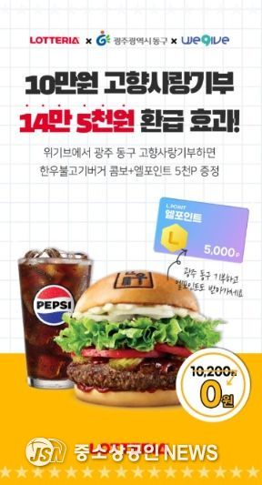 광주 동구는 고향사랑기부제 활성화를 위해 민간 플랫폼 위기브·롯데멤버스·롯데리아와 협력해 특별 기부 이벤트를 진행한다고 밝혔다.
