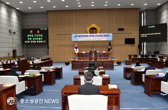 광주광역시의회는 11월 28일, 시의회 본회의장에서 조선대학교·전남대학교와 함께 ‘대학생 모의의회 본회의’를 개최했다.
