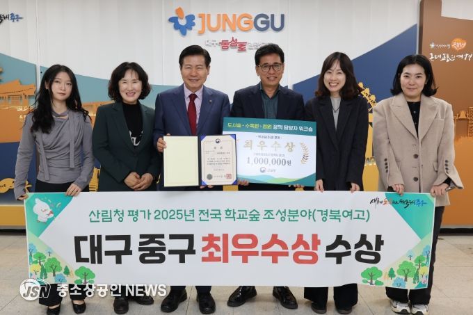 대구 중구는 산림청이 주관한 ‘2025년 녹색도시 우수사례’ 전국 공모에서 대구 지역에서 유일하게 학교숲 조성 분야 최우수상을 수상하는 쾌거를 거두었다고 밝혔다.