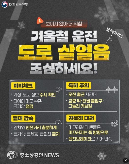겨울철 운전 도로 살얼음(블랙아이스) 조심하세요!