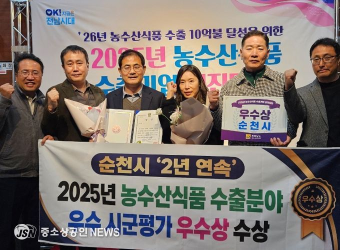 순천시는 지난달 28일 남악스카이컨벤션센터에서 열린 2025년 농수산식품 수출분야 우수 시군 평가에서 작년에 이어 우수상을 2년 연속 수상했다.