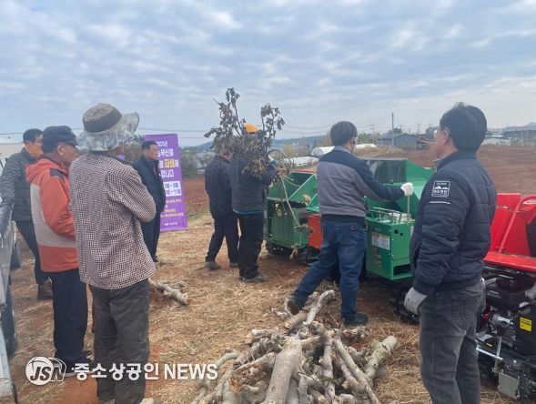 또한 군은 지난 11월 19일 수요가 늘어나고 있는 무화과 잔가지 파쇄를 효율적으로 추진하기 위해 중형급(35마력) 파쇄기 현장 시연을 추진하고 농업인들과 소통의 자리를 가져 농업인들에게 큰 호응을 얻었다.