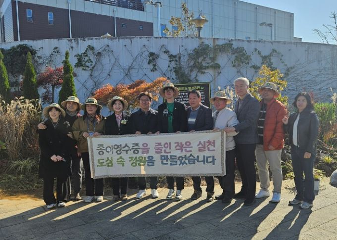 광주광역시 서구의회 임성화의원(광천동, 유덕동, 치평동, 상무1동, 동천동), 서구청(공원녹지과), (사)광주소비자공익네트워크, BC 카드사 등 민‧관협력을 통해 상무시민공원 일대에 전국 최초의 '페이퍼리스(Paperless) 환경정원' 이 조성됐다.