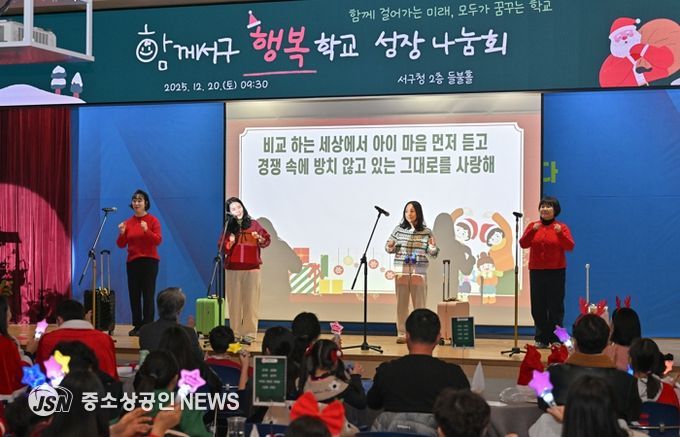 이날 성장 나눔회에는 김이강 서구청장을 비롯해 행복학교 참여 가족 등 100여 명이 참석해 1년간의 배움과 변화를 되돌아보며 서로의 성장을 공유했다.