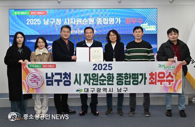 대구 남구는 2025 대구시 자원순환행정 종합평가에서 9개 구·군 가운데 ‘최우수’(1위)를 차지하며, 자원순환 선도 도시 명품 남구의 위엄을 알렸다.