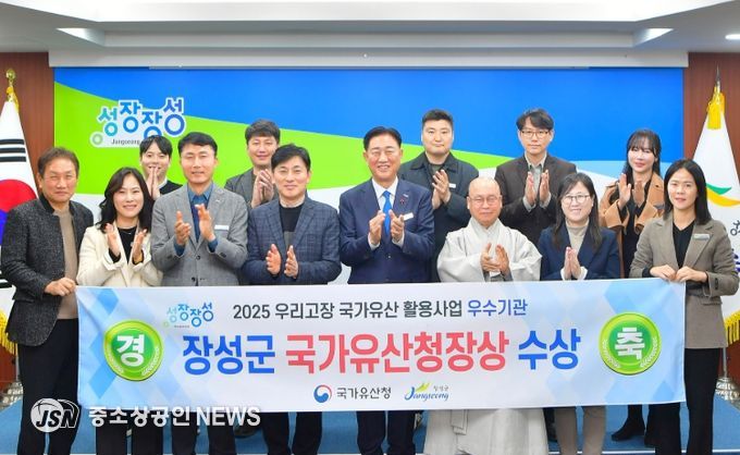 장성군이 국가유산청 공모사업인 ‘우리고장 국가유산 활용사업’ 전통산사 문화유산 활용사업 분야에 2년 연속 우수기관으로 선정되며 국가유산청장상을 받았다.