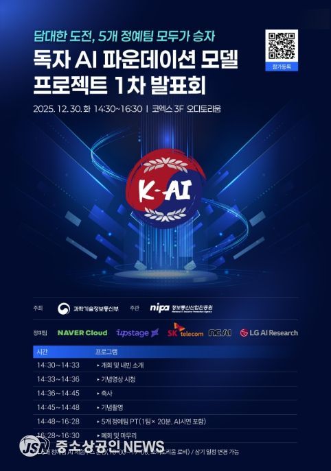 과학기술정보통신부와 정보통신산업진흥원(원장 박윤규)은 오는 12월 30일 14:30, 코엑스 오디토리움에서, 「독자 AI 파운데이션 모델」 프로젝트 1차 발표회를 개최한다.