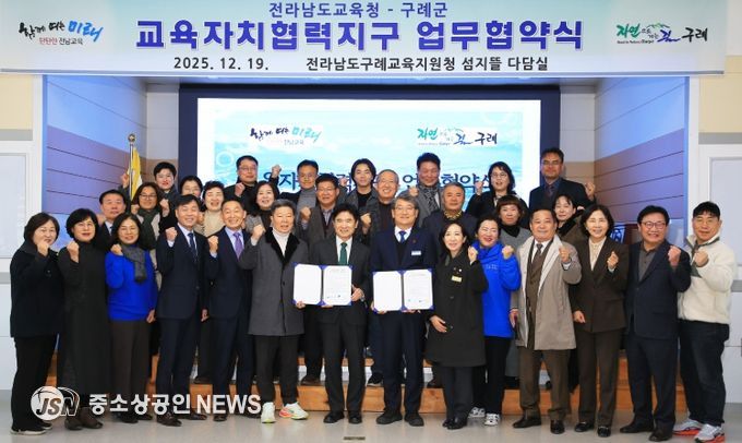 구례군은 지난 19일, 구례교육지원청 섬지뜰 다담실에서 전라남도교육청, 구례교육지원청, 구례군의회, 학교장, 민관산학위원, 학부모연합회 등 50여명이 참석한 가운데‘구례교육자치협력지구’업무협약을 체결했다고 밝혔다.