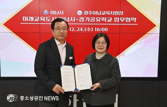 하남시는 24일 시청 집무실에서 경기도광주하남교육지원청과 지역 교육 협력을 강화하기 위한 '미래교육도시 하남시–경기공유학교 업무협약'을 체결했다고 밝혔다. 이날 협약식에는 이현재 하남시장을 비롯해 오성애 광주하남교육지원청 교육장 등 양 기관 관계자들이 참석했다.