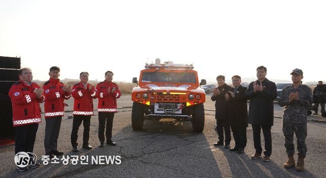 이번에 출고한 다목적 산불진화차량은 산림청·행정안전부·과학기술정보통신부가 공동으로 추진한 연구개발사업의 성과물로, 군(軍) 소형전술차량에 일반 산불진화차의 두 배 이상인 2,000리터의 물탱크를 탑재했다.