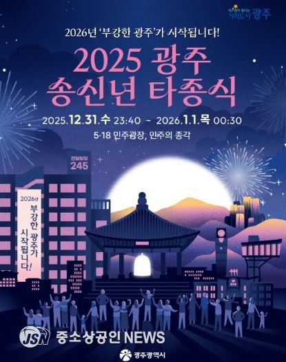 행사에는 강기정 시장을 비롯한 2025년 한 해 광주를 빛낸 시민대표 18명으로 구성된 타종 인사와 시민 등 3000여명이 참석할 예정이다.