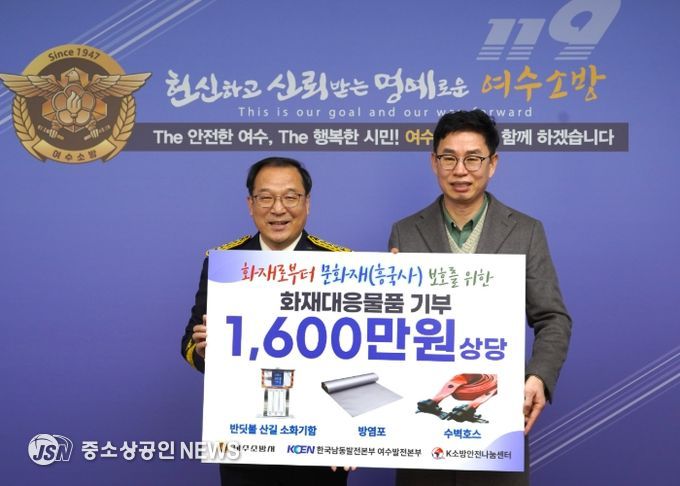 조천환 한국남동발전 여수발전본부장은 “지역사회와 함께 안전을 지켜야 한다는 공기업의 사회적 책임을 실천하고자 이번 기부를 마련했다”며 “기부한 화재안전물품이 겨울철 화재 예방과 문화재 보호에 도움이 되길 바라며, 앞으로도 지역 안전을 위한 협력을 지속해 나가겠다”고 밝혔다.