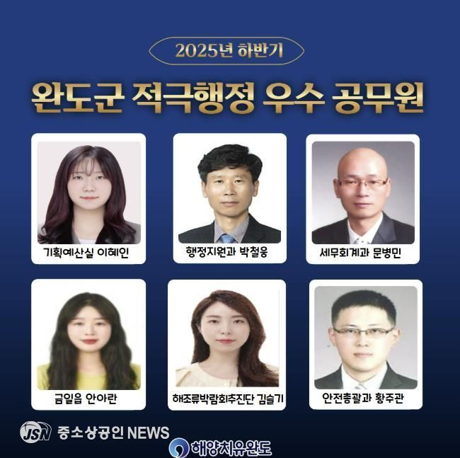 완도군은 지난 24일 적극행정위원회를 개최하고 ‘2025년도 하반기 적극 행정 우수 공무원’ 4명과 협업팀 2팀을 선정했다.