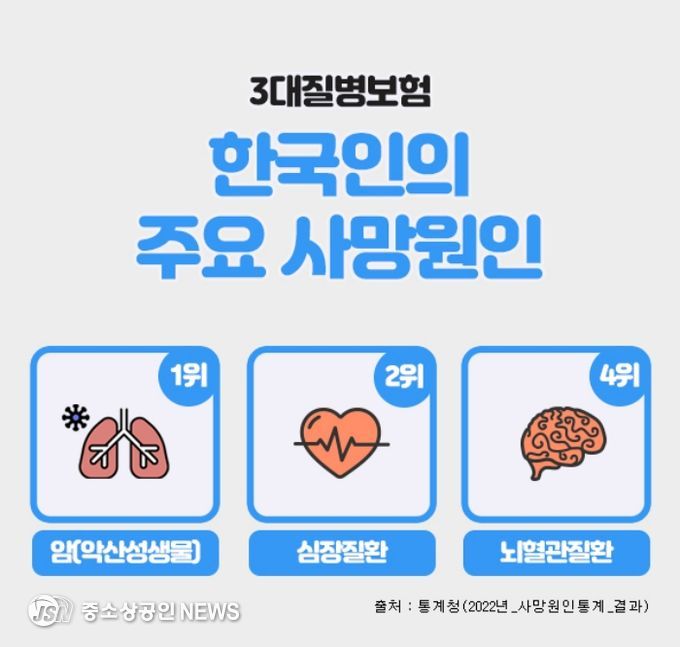 3대질병으로 일컬어지는 암, 뇌혈관질환, 심혈관질환은 한국인의 주요 사망원인에서 상위를 차지하고 있으며, 이에 대한 진단비를 집중적으로 보장해 주는 보험상품을 3대질병진단비 보험이라 할 수 있다.