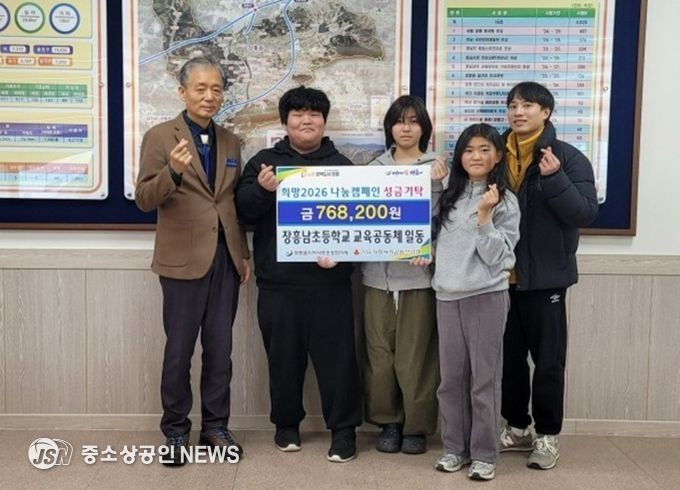 장흥남초등학교 학생들이 지난 7일 장흥읍행정복지센터를 찾아 ‘2026 희망나눔캠페인’ 성금 768,200원을 기탁했다.