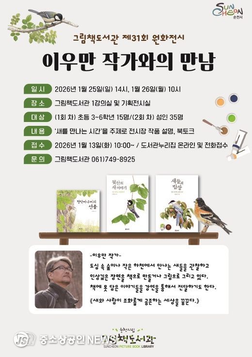 순천시는 제31회 그림책 원화전시와 연계해 생태 세밀화가이자 그림책 작가인 이우만 작가를 초청해 작가와의 만남을 운영한다.