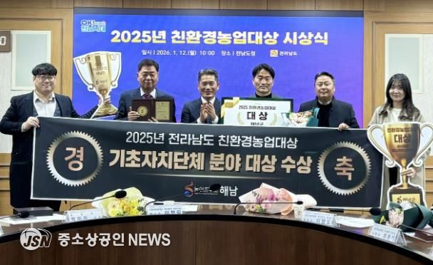 해남군이 전라남도‘2025년 친환경농업대상’평가에서 대상을 수상했다. 2년연속 대상 수상으로, 우리나라 친환경농업 선도 지자체의 위상을 확고히 했다. 해남군은 상사업비 8,000만원도 확보했다.
