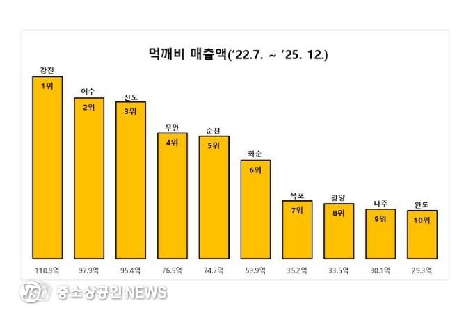 더불어 강진군의 먹깨비 누적 매출액은 2025년 12월 기준 12월 110억 원을 돌파하여 전라남도 내 굵직한 시군을 제치고 당당히 1위를 차지했다.