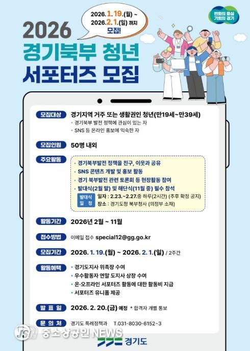 경기도는 경기북부 발전에 대한 도민 인식을 높이고 그 필요성을 홍보하기 위해 1월 19일부터 2월 1일까지 ‘경기북부 청년 서포터즈 2기’를 공개모집한다.