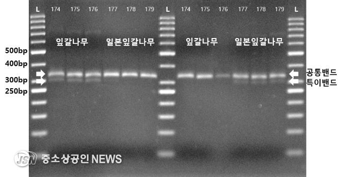 이에 국립산림과학원 연구진은 목재의 DNA 추출 효율을 극대화하는 조건을 확립하고, 엽록체와 미토콘드리아 정보를 동시에 활용하는 정밀 분석 기술을 개발했다. 특히 형태가 유사해 육안 구별이 사실상 불가능한 ‘잎갈나무’와 ‘일본잎갈나무’를 유전적으로 정확히 판별할 수 있는 길을 열었다.