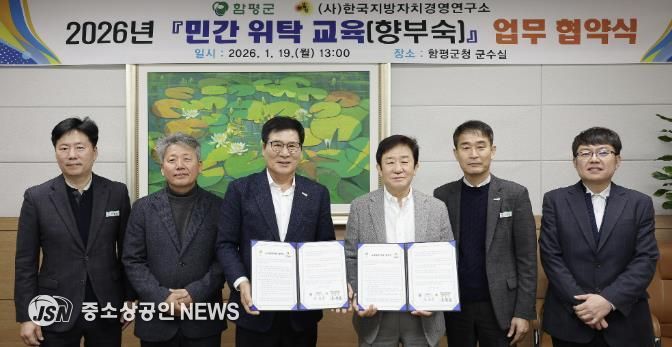 전남 함평군이 “지난 19일 (사)한국지방자치경영연구소와 군민 평생교육(향부숙) 위탁 교육 추진을 위한 업무 협약(MOU)을 체결했다”고 20일 밝혔다.