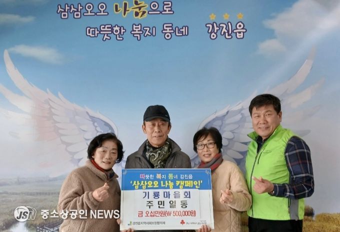 강진읍지역사회보장협의체(공동위원장 정명흥, 임창복)가 주관하는 ‘삼삼오오 착한 기부 나눔 릴레이’의 2026년도 첫 번째 주자(26년-1호)로 기룡마을회가 참여하며 따뜻한 출발을 알렸다.