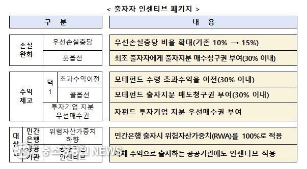지역사회가 참여하는 모펀드별 ‘운영위원회’를 설치하고 지역투자 재원 확보를 위해 출자자 인센티브 패키지를 제공한다. 인센티브는 손실은 낮게, 수익은 높게, 대상은 넓게 설정한다. 지역 기반 벤처캐피탈 육성을 위한 지역운용사 인센티브도 운영할 계획이다.