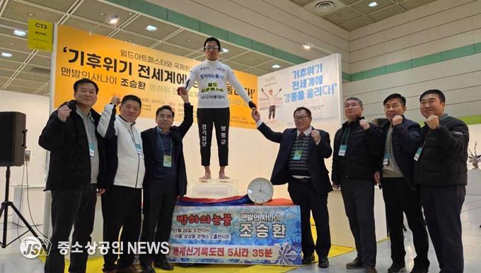 광양시는 광양시 홍보대사인 조승환 씨가 지난 24일 서울 코엑스에서 열린 ‘월드아트페스타’ 개막식에서 ‘얼음 위에 맨발로 오래 서 있기’ 세계 신기록을 경신했다고 밝혔다.