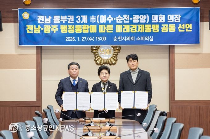 광양시의회 최대원 의장은 지난 27일 전라남도와 광주광역시의 행정통합 논의가 본격화되고 있는 가운데, 백인숙 여수시의회 의장, 강형구 순천시의회 의장과 함께 전남·광주 행정통합에 따른 전남 동부권의 공동 발전과 미래 경쟁력 강화를 위한 '전남 동부권 미래경제동맹 공동 선언문'을 발표했다.