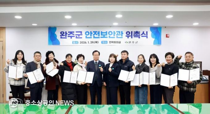 완주군이 ‘2026년 완주군 안전보안관 위촉식’을 열고 신규 안전보안관 12명에게 위촉장을 수여했다.