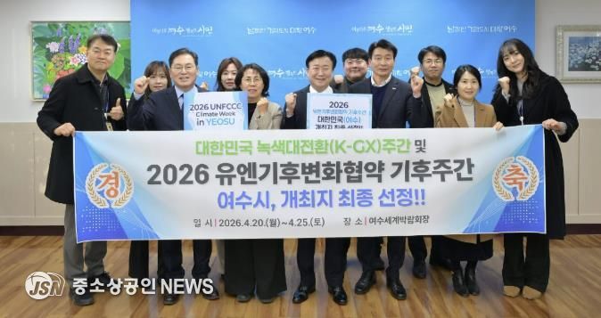 여수시가 ‘2026년 유엔기후변화협약(UNFCCC) 기후주간(Climate Week)’ 개최지로 대한민국(여수)이 최종 선정됐다고 밝혔다.