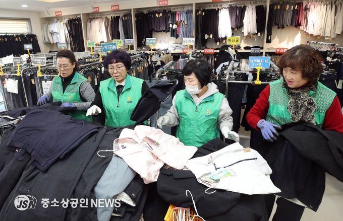 새마을부녀회 소속 자원봉사자가 상주해 학부모와 학생들이 적합한 교복을 찾을 수 있도록 돕는다.