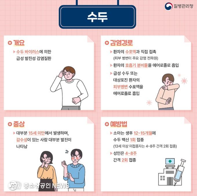 수두는 수두-대상포진 바이러스에 의해 발생하는 제2급 법정감염병으로 겨울에서 봄철에 유행하고 주로 소아에게 발생하며 전염력이 매우 높은 것이 특징이다.