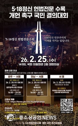 5·18정신을 헌법전문에 수록하기 위한 개헌을 촉구하는 각계의 목소리가 높아지고 있다. 오는 6월 전국 동시 지방선거와 연계한 ‘원포인트 개헌’ 논의가 확산되면서 5·18정신 헌법전문 수록을 요구하는 사회적 공감대도 빠르게 확산하고 있다.
