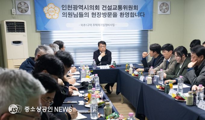 인천광역시의회 건설교통위원회는 5일 김대중 위원장을 비롯해 석정규·박종혁·이단비 의원 등이 참석한 가운데 장기간 공사 중단과 입주 지연으로 주민 불편이 지속되고 있는 미추1구역주택재개발정비사업(주안센트럴파라곤) 현장을 방문해 사업 추진 현황 점검과 문제 해결 방안을 찾는 현장방문을 실시했다.